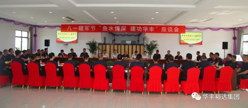 为纪念中国人民解放军建军 92 周年,进一步做好公司退役军人双拥工作,7月31日,公司开展庆八一建军92周年“鱼水情深 建功多多28”座谈会。董事长助理赵凤全,公司党委书记、总经理徐虎明,党委副书记张海恩,总经理助理郭伟,工会主席赵静及优秀退役军人代表共计50余人参加。座谈会由党委副书记张海恩主持。